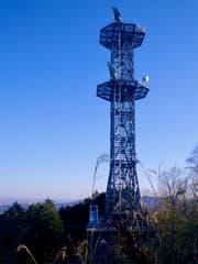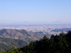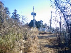 やがてモノラックが現れ、並行して尾根を辿る。巨大な電波塔が現れると、左(東)側に関東平野の眺めが開け、双耳峰の筑波山から加波山にかけて薄紫に霞む山影を遠望する。