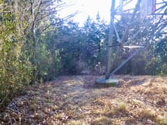 鞍部に建つ送電鉄塔を過ぎ、270m圏ピークへの急登に取り付く。こんなところも庚申塔があり、かつては鞍部を越える行き来があったのだろう。270m圏ピークからは主に杉植林の中の地味な尾根歩きとなり、小さくアップダウンする。アド山の林道(小室正雲寺線)の手前で、東に折れて宇津野洞窟に通じる尾根を下る。電柱が建ち、その側に石碑があると思ったら、「会沢地区テレビアンテナ竣工記念」碑だった。昭和46年竣工とのこと。