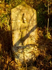 さらに藪を下ると、葛生町上水道配水場があり、そこから良い山道となって山麓に下り着く。右手の山斜面に2基の青面金剛があり、無事下れたことを感謝して手を合わせる。