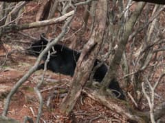 夢中でアカヤシオの写真を撮っていると、すぐ下でペキペキと枯れ枝を踏みしだく音がして、黒く大きな動物が目の前の少し先を横切って行く。クマだ!私に気づいた素振りはなく(熊鈴は付けていなかった)去って行ったので、全然怖くはなかったが、ぱったり鉢合わせしたらやはりクマったことになり、怖いかも知れない。