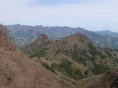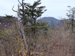 稜線上には明瞭な踏み跡が通じ、テープ類を見かける。昔の山行記録を読むと篠竹藪が酷いとの記述を散見するが、現在は全面的に枯死したようで、藪は皆無だ。枯死の原因は何だろう。何れにしても、藪漕ぎがないのは幸いだ。