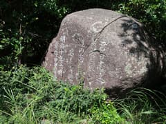 腹が満ちたところで、俵山に向かおう。大きく下ったのち、小ピークをいくつか越えて、草原に覆われたなだらかな稜線を緩く下る。正面の俵山はどんどん高く見上げるようになって、登りが大変そう。護王峠のすぐ手前には「君も志連 我ハ心を尽し野々 道の志をりに 名を有雄 明治十年六月 道守甲斐有雄」と刻まれた石碑がある。後日調べると、甲斐有雄翁は石工を営むかたわら、旅人が道に迷わないように、阿蘇を中心に約1800基もの石道標を設置したことで知られる方だそうだ。