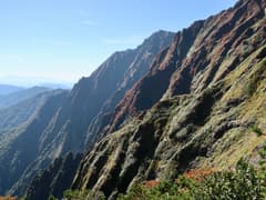 先行する2人組おじさんのハイカーさんに追い付くが、どっちを見ても絶景という場所なので、写真を撮りつつ後についてのんびり登る。そうするうちに後続のハイカーさんが距離を縮めてきた。浮石を落とさないように注意して登る。