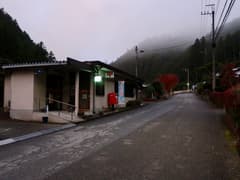 桐生を未明の4時半に車で出発。R50沿いの吉野家で朝飯をしっかり食べたのち、太田桐生IC〜栃木ICは高速を使い、大越路トンネルを抜けて、県道鹿沼足尾線で思川の上流に向かう。まだ暗い中、下山予定地の上粕尾に到着。細尾沢橋の袂の広い路側に車を置き、100m程先の上粕尾郵便局バス停で、6:32発JR鹿沼駅行のリーバスを待つ。上空はようやく白み始めて、天気は予報通り良さそうだが、山の上には厚く靄がかかっている。