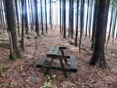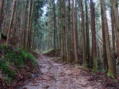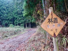 鬼平バス停から少し戻って、思川に架かる鬼平橋を渡り、直進。数戸の民家を過ぎ、林道鬼沢線に入る。この林道は地形図には記載されていないが、Googleマップに載っていたので、高谷山の登路に使えるかもと思って、今回、来てみた次第。未舗装の路面の轍は新しく、現役で利用されている様子が窺える。谷間の杉林に入っても、路上の倒木は片付いている。今のところ、目論見通りのいい道だ。