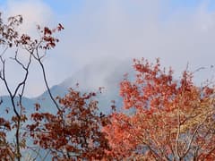 広い駐車スペースとWCのある上粕尾公民館を過ぎ、細尾沢橋を渡って駐車地点に戻る。見上げると東尾根末端の鋭角な三角形の断面が聳り立ち、怪峰っぷりを発揮している。