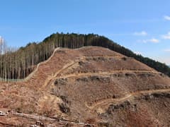 西側の方が明るいので行ってみると、西斜面が大規模に伐採されて、尾出山を正面とする展望が開ける。前回、来たときは伐採されていなかった。人の手が加わった結果で、厳重に張り巡らされた防獣ネット越しではあるが、好展望が得られるようになったので、地味さはちょっと軽減されたように思う。