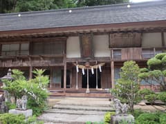 ここは石裂山(尾鑿山)への入粟野側からの登拝路の入口で、こちらのルートもいつか登ってみたいが、今日は入口の賀蘇山(がそやま)神社に参拝するだけにする。石段を上がって境内に入ると、神楽殿や「尾鑿山」との立派な額を掲げた社務所兼拝殿が建つ。