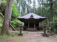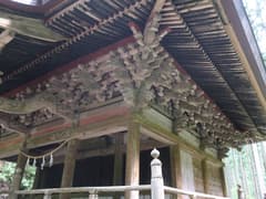 登拝路に少し入ると、杉の大木に囲まれて遥拝殿が建つ。四方の龍の彫刻が見事だ。ここは下の宮とも呼ばれ、尾鑿山直下の岩屋に御本社が祀られているとのこと。これはやはりいつかはこちらからも登って、御本社を参拝しないと、だな。
