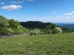 しばらく車道を歩き、それから牧場の右端を牧柵に沿って歩く道(関東ふれあいの道)に入って、方塞山に向かう。こちらはハイカーさんが少なくなり、ソロハイカーさんがチラホラと、年配ご夫婦+小さな男の子(お孫さん?)が歩いているくらい。私は帰りのバスの時刻がそろそろ頭にあって、ペース上げ気味で歩いているのだが、このお孫さん連れはそれにあまり遅れないペースで、妙に足が速い。