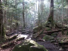 短い急斜面を降りると尾根上に明瞭な踏み跡が続き、緩やかに登る。苔むした岩石帯だが、意外と良い道で歩き易い。写真を取りながらゆっくり歩き、ふと気が付くと、後続にハイカーさんが居る。おやと思ったが、その後、追い付かれることもなく、いつの間にか姿が見えなくなった。