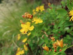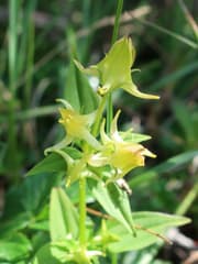 頂上の直ぐ先は倒木帯で踏み跡が不明瞭だ。ここを過ぎると、左側に砂礫地が開けた展望地に飛び出る。砂礫地の先は岩稜となり、その向こうはすっぱりと切れ落ちた大岩壁となっている。この岩壁はロッククライミングの対象になっているそうだ。岩壁の縁から俯瞰すると、遥か下には緑深い樹林が広がり、小さくミドリ池が見える。また、荒々しい崩壊斜面を抱く天狗岳や硫黄岳の眺めも素晴らしい。砂礫地にはオンタデの他、イブキジャコウソウの群落がある。展望と花を楽しんで、しばし休憩する。