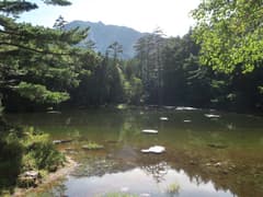 松原湖への道から分岐してひと登り。そこからゆるゆると下ってミドリ池に着く。今朝とは光の当たり方が違い、水中の藻が良く見えて池が名の通り緑に見える。東天狗は逆光気味で、朝の方が良い眺めだった。しらびそ小屋の前には、ベンチに寝っ転がって昼寝したり読書したりと寛ぐハイカーさんが数組。優雅ですなあ。小屋のケーキセットは3時をわずかに回っていて、販売を終了していた。残念。