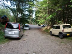 桐生を深夜2時頃に車で出発。八千穂高原ICで高速を降り、松原湖を経由して、大月川沿いの細い車道を上がる。未明で寝静まる稲子湯を過ぎ、みどり池入口バス停のある駐車スペースに車を置く。既に5台程の駐車がある。ずっと続いていた酷暑も一休みしたようで、車外の気温は8℃と、涼しいを通り越して寒いくらいだ。朝食にパンを食べ、夜明けの橙色の光が林間に差し込むのを待って出発する。