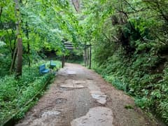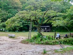 ちはや園地に入り、ロープウェイ山上駅から舗装された歩道を緩く登ると、見晴らしの良い尾根の鼻に千早赤坂村村営宿泊施設の香楠荘が建つ。ここから、行きに通った休憩所までは直ぐで、その先は往路をそのまま戻る。下りは楽だ。段々と晴れ間が広がり、明日の天気に期待を持つ。登山口に下り着くと駐車が1台増えていたが、天ヶ滝道の往復では一人もハイカーさんに会わなかった。