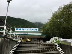 葛城山ロープウェイの山麓駅(葛城登山口駅)に到着。がらんとした駐車場に車を置く。平日なのに駐車料金1000円は痛い。ロープウェイ運賃は往復1250円。30分間隔の運行で、15:30発に乗る。乗客は私一人だけで、そりゃ、平日夕方のしかも雨が降っている状況で登る物好きはそう居ないだろう。係員も怪訝な感じで、上(国民宿舎がある)に泊まりかと尋ねるので、日帰りと答えると、下り最終は17:00発と念押しされる。なお、葛城山は春のヤマツツジが見事で、シーズン中には乗車待ちが2〜3時間にもなるそうである。