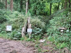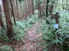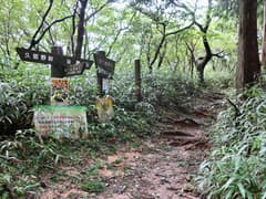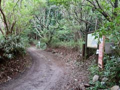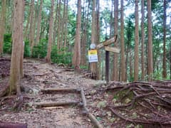 途中、登山口に至る「櫛羅(くじら)の滝コース」と「北尾根コース」の登山道が分岐するが、いずれも台風の影響で通行禁止となっている。できれば、これらのコースを利用し、登山口から歩いて登りたかった。