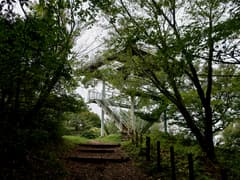 ロープウェイから見下ろす葛城山の尾根と谷は、1000mに満たない山にしては急峻だ。沢筋に砂が厚く堆積しているのは、先般、関西に上陸した台風21号の影響か。眺めを楽しんで山上駅に着く。しょぼ降る雨の中、折り畳み傘を広げて歩き始める。幸い、整備された遊歩道を歩くので、半袖カッターシャツ、チノパン、革靴という出で立ちでも問題ない。