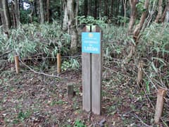 新欽明水から山腹をトラバースして少しで主稜線に登り着き、縦走路(ダイヤモンドトレール)に合流する。笹原と低木が繁る平坦な稜線を北に辿ると未舗装の車道に出る。ここが伏見峠だ。道標にはダイヤモンドトレールを略して「ダイトレ」と書かれ、マクドみたいな関西風センスを感じる(^^;)。ちなみにダイヤモンドトレールの名称は金剛石(ダイヤモンド)に由来している。