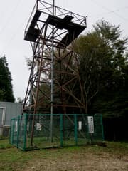 山頂広場には金剛山頂の山名標識があり、普通はここが金剛山の頂上とされている。ベンチがあり、展望も得られて、休憩中のハイカーさんが多い。ただし、今日はガスっているため、展望は雲の下に富田林(とんだばやし)市辺りの街並みが眺められる程度である。山名標識の辺りはライブストリーミングカメラで常時インターネット中継され、名物になっている。また、ここの照明灯は夜間、大阪からも光っているのが見えるそうである。