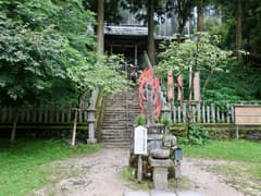 本堂前の石段を下ると平地となり、不動像やひさご沼という小さな池がある。ひさご沼は太閤秀吉が参詣の際に瓢簞を模(かたど)って掘ったそうだ。