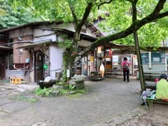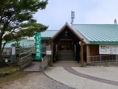 すぐ先には社務所や宿坊、公共WC、営業中の売店があり、広い山頂広場に続く。