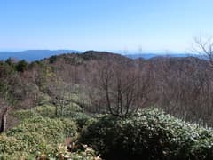 前袈裟丸山を眺めながら笹斜面の縁を登り、樹林を抜けると、平坦な賽の河原に着く。櫓の展望台があり、梯子を登って上がってみたが、袈裟丸連峰の方向は木の梢が邪魔をしてイマイチだ。まあ、展望はこの先にたくさん良いところがあるだろう。