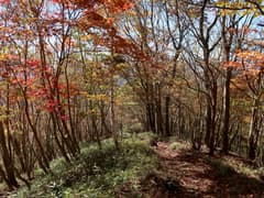 最後に紅葉した樹林を下って、12時前に折場登山口に帰り着く。山中でハイカーさんに会ったのは散発的だったので、そんなに多い感じではなかったのだが、十数台分の駐車場はほぼ一杯になっていた。流石に人気のある山である。