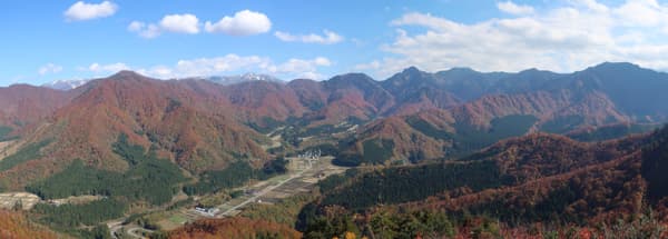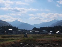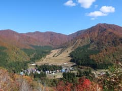 今日は快晴微風。暑くも寒くもなく、本当に気持ちの良い天気だ。駅前から疎らな街並みを抜けて、広々とした田園風景の中を歩く。周囲の山々はちょうど紅葉している。民家の玄関先で紫煙を燻らせていたお姉さんから「いい天気ですねー」と声をかけられたので、「紅葉が綺麗ですねー」と返すと、「この時期だけで、もうすぐ雪が降っちゃうんですよ」と仰る。スキーヤーとしては雪は待ち遠しいくらいだが、豪雪地帯に住む地元の人にとっては、そういうのが実感なんだな。