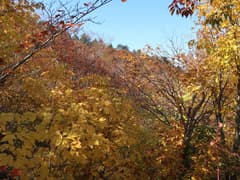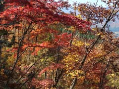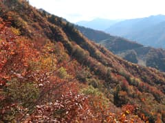 尾根道は小さく上下しながら、段々と高度を上げていく。紅葉と黄葉の樹林が続き、所々から大源太山や足拍子岳の展望も得られて、至極ご機嫌な道のりが続く。正直、これほど良い山だとは期待していなかった。途中、ハイカーさん数組と交差する。マイナーな山と思っていたが、結構人気もあるようだ。まあ、それも宜なるかな。