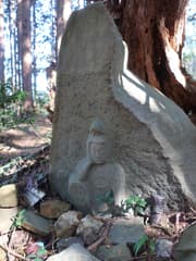 この先にも尾根がT字に枝分かれして進路が分かりにくい個所があるが、直進して急坂を下ると峠に降り立つ。ここには、素朴な感じの如意輪観音の石像がある。