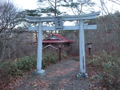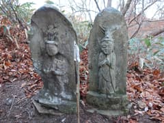 今日は快晴で風もない穏やかな天気だ。しかし、先週からさらに冷え込んで、車外温度計は氷点下を示している。フリースを着込んで出発。まず、不動尊にお参りする。不動尊の下の谷に不動滝が架かるが、谷は深く切れ込んで、覗き込んでも滝は見えない。不動尊の堂は戸締まりされて、中は拝めない。境内には二体の馬頭観音像がある。それぞれ「宝暦七(1757)年十一月吉日」「安永三午(1774)年三月吉日 合瀬村」の銘のある古い物だ。