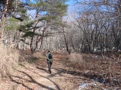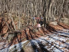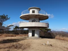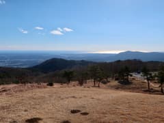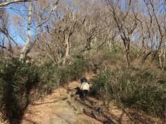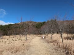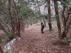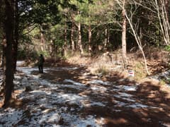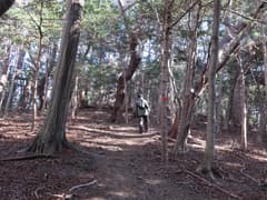 登山道は東峰で右折して、アセビ林の間のちょっと急な下りとなるが、ここは問題ない。一直線に降りると傾斜が緩んで、アカマツやヒノキ林の中をのんびり下る。簡易給水施設の小屋を過ぎ、林道を横断すると、西コースと東コースの分岐に戻り着く。あとは往路を戻って、ききり荘前の駐車場まで5分程の距離だ。ゆっくり歩いて全行程3時間弱の軽い山だが、頂上からの展望が良く、登山道も整備されていて、とても楽しく歩けた。