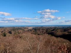 ようやく天ざる蕎麦に有り付いたのち、石森山に向かう。常磐線を高架橋で渡り、丘陵に上がってフラワーセンターを過ぎ、石森山頂上直下の広い駐車場に着いて車を置く。