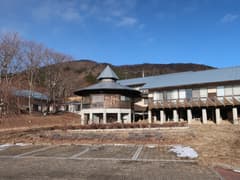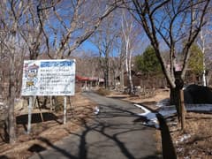 いわき湯本IC〜小野ICは高速を利用。小野市街から山間を縫うように走り、幾つもの集落を通過する。日陰の路面には薄らと雪が残る。鬼ヶ城山の中腹にあるキャンプ場「いわきの里鬼ヶ城」に向かい、宿泊・研修センター「ききり荘」前の駐車場に車を置く。ききり荘の背後には、鬼ヶ城山の平坦な頂上稜線が青空に浮かぶ。ここにある説明板の山名由来によると、坂上田村麿によって大滝根山で滅ぼされた大多鬼丸の残党が立て籠って頑強に抵抗したことから鬼ヶ城と呼ばれるようになったそうだ。