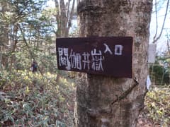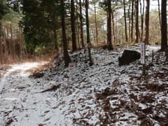 初詣を終え、次は閼伽井嶽に登る。鞍部に戻って路側のスペースに駐車。ここが登山口で、尾根伝いに登山道が通じている。また、西麓の成沢集落への山道も分岐する。