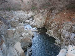 湯本温泉への帰りは下道を走る。JR磐越東線川前駅に出て、鉄道と夏井川に並行する県道小野四倉線を走る。途中、夏井川渓谷と称するなかなか険しい渓谷が続く。道も細く、低山らしからぬ奥山の雰囲気があって、ドライブが楽しめる。紅葉の名所としても知られているそうだ。いわき市街を経由して、宿に戻った。