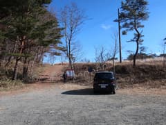 次の水石山へは、鞍部の三叉路から車で上がる。頂上直下の分岐は左へ進み、突き当りの未舗装の駐車場に車を置く(分岐を右に進んでも駐車場があり、そちらの方が展望が良くてポピュラーである)。