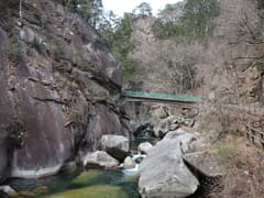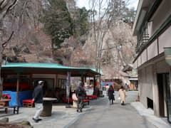 まず、昇仙峡入口の長潭(ながとろ)橋袂の渓水館というそば処に立ち寄って昼食を摂る。ここで昇仙峡の地図を貰い、渓谷沿いの車道を車で進む。この道は通常、車両の通行が規制されているが、今日は観光シーズン外の平日なので通行可。他に通る車は見ないが、歩いている人はそこそこ居て、外国人観光客の団体などともすれ違う。