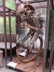 右岸の石段を登って滝上に出ると、水晶を売る土産物屋が建ち並ぶ。水晶も綺麗で目を引くが、何故かメタルクラフトのエイリアン像とプレデター像があり、良く出来ていて一番目を引かれる。