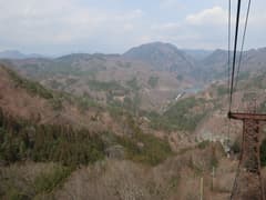 仙娥滝の上流は、ここまでとは打って変わって、穏やかな流れとなる。土産物街を歩いて昇仙峡ロープウェイの山麓駅(仙娥滝駅)に着き、往復の乗車券(1300円)を買って、ロープウェイに乗り込む。日中は20分間隔で運転しており、ちょうど14:00発の便に乗れた。乗客は10人程。車窓から振り返ると荒川ダムや、その奥にこんもりと盛り上がる中津森が眺められる。