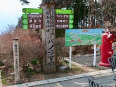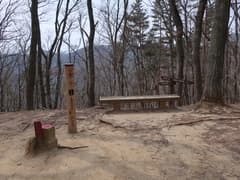 ロープウェイの山頂駅はパノラマ台と呼ばれ、南面の甲府盆地に向かって展望が開ける。今日は霞がかかって、残念ながら富士山までは見えない。なお、すっかり記憶から消えていたが、記録によると前回もロープウェイでここまで来て、その時は富士山を眺めている。山梨百名山の羅漢寺山の標識が立っているが、最高点はここから15分程の距離にある弥三郎岳なので、往復して来よう。