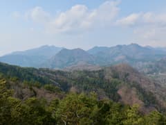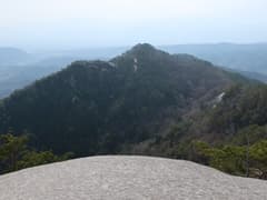 頂上の先は昇仙峡に向かって切れ落ちて、なかなか高度感がある。眺めも良く、南には羅漢寺山から派生する白砂山、西面には台形に盛り上がる太刀岡山や、その奥の茅ヶ岳、曲岳、黒富士あたりの山々が眺められる。