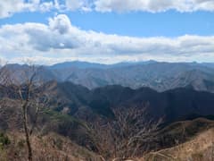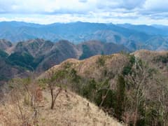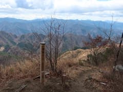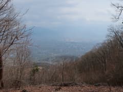途中、林道を横断して再び稜線上の山道を登る。左(西)には甲府盆地を俯瞰し、南アルプスを遠望する。