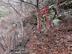 R20を東進し、勝沼から扇状地の斜面を上がって、大滝不動尊奥宮への車道に入る。この車道はガードレールもなく急峻な山腹を大きく切り返して、グングン高度を上げる。予想以上に険しい山だ。ヤマレコで読んだ棚横手山のレポに、冬に登った際、この道の路面が凍結していて、行き帰りの運転が一番怖かった、というものがあった。さもありなむ。