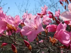 仙人ヶ岳に向かうと、ポツポツとアカヤシオが咲いている。先日の雨風で痛んだのか、花びらの端に若干萎れが見られるが、蕾が少し残る頃合で、ちょうど見頃。なかなか綺麗だ。今年初のアカヤシオを見ることができて良かった。