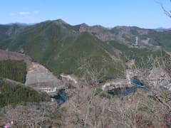 昼食後、熊の分岐に戻り、猪子峠へ稜線上の道を辿る。この稜線は一昨年のアカヤシオの旬にも逆ルートで歩いている(山行記録)。知ノ岳の頂上は南面の眺めが開け、まつだ湖を俯瞰する。見晴らしの良い稜線を下って登り返すと宗ノ岳で、この辺りから再びアカヤシオの花が現れる。