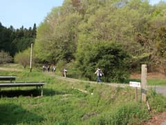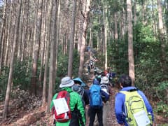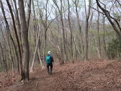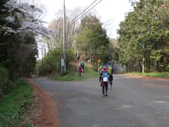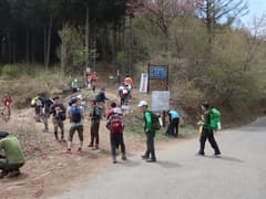 スタート後、最初の曲がり角にあるコンビニで昼食のパンとペットボトル飲料を買う(東松山でコンビニに立ち寄ったが、何故か開いていなくて買いそびれていた)。それから、そこそこの密度の隊列に加わって市街地の車道を歩く。しかし、なんかペースが速いように感じるのは、参加者が精鋭化しているのか、それとも私の脚力の問題か(^^;)。市街を抜けると新緑が鮮やかな田園地帯に入る。官ノ倉山への山道に入ると隊列が連続するが、鎖場のある急坂に差し掛かっても然程ペースが落ちない。