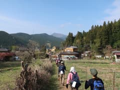しばらく車道を歩く。早くも右足裏に底マメができかけて、違和感がある。先は長いのに大丈夫だろうか。和紙の里にはたくさんの露店が出ていて、大勢の参加者が休憩して賑わっている。少し休み、WCを済ませて先に進む。