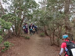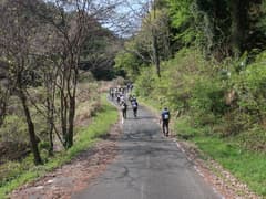 荻平丁字路から山道に入り、笠山への長い登りに取り付く。隊列が続くが、ペースは速く保ったままだ。笠山CPでスタンプを貰い、腰を下ろして少し休憩する。笠山頂上は行かなくていいや。ここからは少し隊列が解け、笠山峠(七重峠)を経て、頂に天文台のある堂平山へ。そろそろ昼時なので休憩し、コンビニで買ったパンを齧る。ここにも露店がたくさん出ていて、美味そうな匂いが漂ってくるが、ダイエットの為に我慢だ。